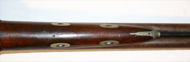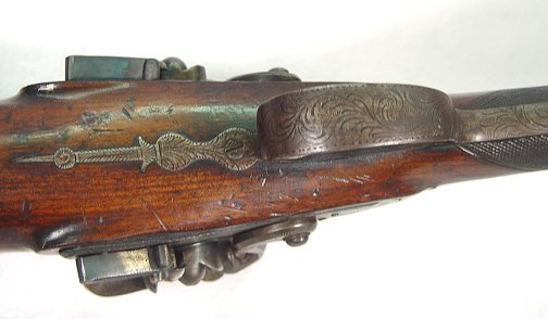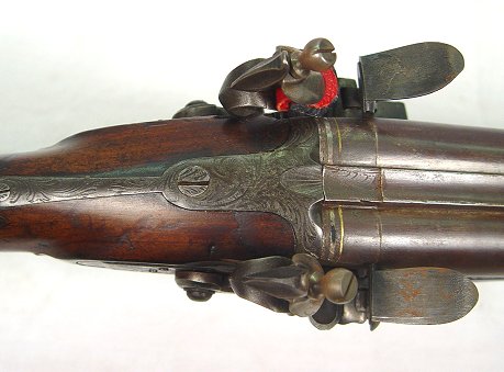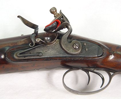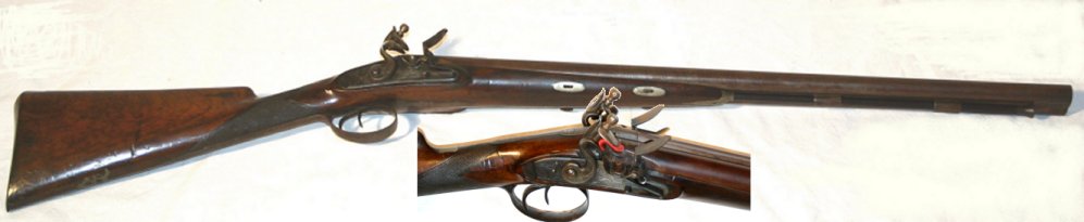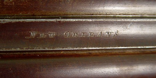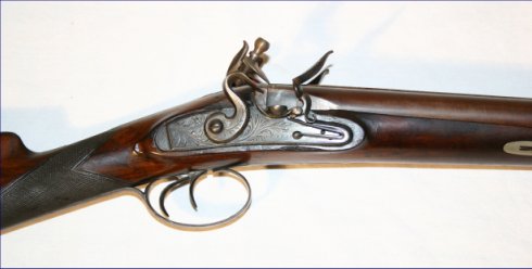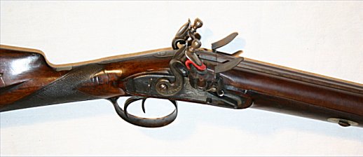 VERY RARE V. LIBEAU, NEW ORLEANS DOUBLE BARREL SHOTGUN: Superior condition! V.G.W. Libeau is listed at No. 9 Camp Street, in New Orleans city directories 1832 - 1845. Known as a maker of percussion derringers and half stock sporting rifles. A recent sale of a Libeau pistol was for over $35,000.00 This is a double hammer flint lock black powder muzzle load double barrel shotgun. Barrel length is 27 3/8'' and overall length is approx. 43''.