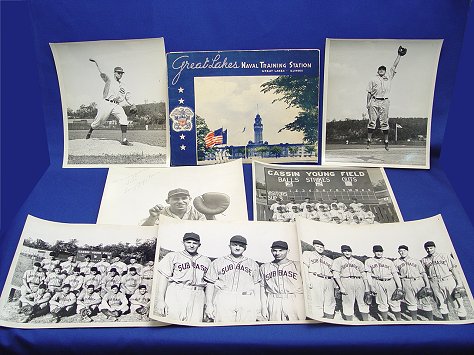 YOUNG YOGI BERRA AUTOGRAPH PHOTO GROUP: Official US Navy photos taken 14 photos of the Navy base teams at Cassin Field on the US Navy submarine station. Individual black and white photo including autographed close up shot of Larry (Yogi) Berra.