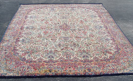 ROOM SIZE ISLAMABAD? FLORAL CARPET: Lovely active polychrome pattern on a pale ground, dark blue fringe, approx. 12'3'' x 10'1''. Please note worn condition.