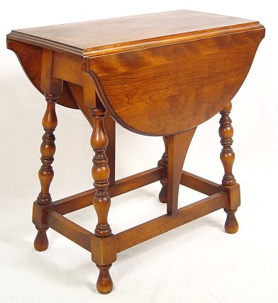 DIMINUTIVE BUTTERFLY GATE LEG TABLE: Handy side table with shaped drop leaves. P.K. Pierce & Son label. 24'' x 12''w. 30'' with leaves extended. `
