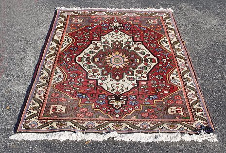 HAND TIED PERSIAN RUG: 5'7'' X 3'7'', earth tones in browns and beiges.