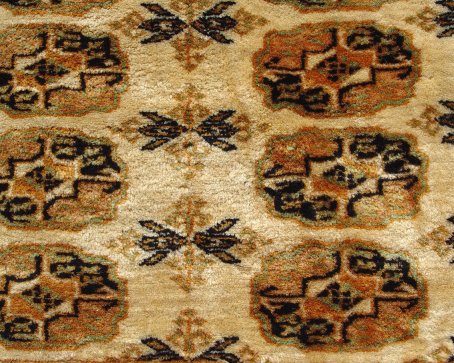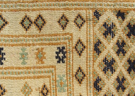 BOKARA CARPET: Black and gold, approx. 11'9'' x 9'l.