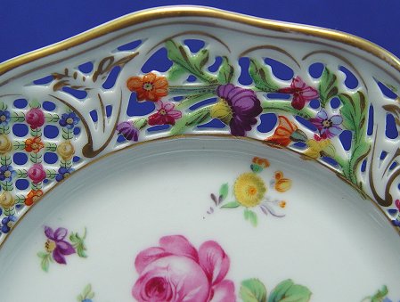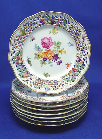 SET OF 8 SCHUMANN DRESDEN GERMAN PORCELAIN RETICULATED PLATES: Floral decorated, 7 1/4'' dia.