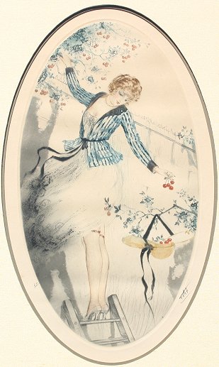 FELIX, Paul Emile, (French, 20th C): ''Cherries'', Color Etching, sight size 19'' x 11'', pencil signed lower right, numbered 65 lower left, encased in contemporary frame, original label affixed verso, 30'' x 21 1/2''.