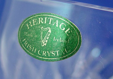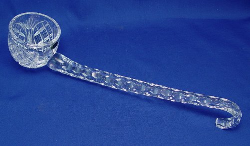 CUT GLASS PUNCH LADLE: Notched handle with a hook top. Heritage Irish Crystal foil label. 16''l.