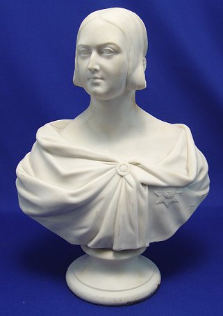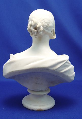 COPELAND PARIAN BUST of a YOUNG QUEEN VICTORIA: Impressed markings verso. Mounted on parian plinth. Parian bust is 10 1/2''h.