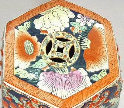 ORIENTAL PORCELAIN GARDEN SEAT IN THE IMARI COLORS: 19''h.