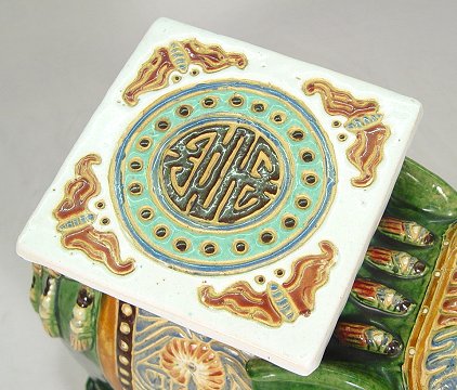 BRIGHTLY COLORED CHINESE ELEPHANT FORM GARDEN SEAT: 23''h, polychrome with a rich green elephant.