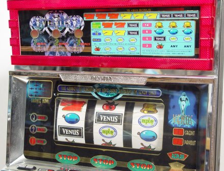 THE VENUS SLOT MACHINE: Ultimate game room accessory in good working order, includes tokens. 32''h. x 18''.