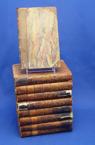 ''THE SPECTATOR'' ALL EIGHT VOLUMES: Printed for J. and R. Tonson and S. Draper. The boards are still intact, the spines are worn. 7'' x 4 1/2''. Sold with an 1850 ''Astoria'' by Washington Irving, authors revised edition.
