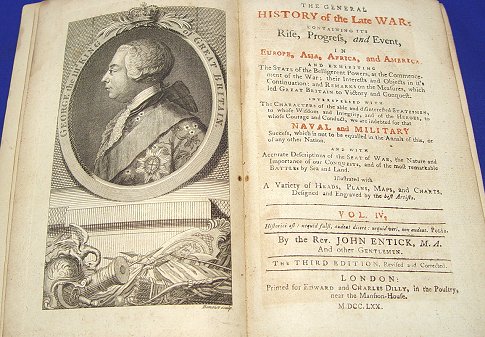 5 VOLUMES ''THE GENERAL HISTORY OF THE LATE WAR'': Rev. John Fentick, Volume I, 1775 3rd edition. Volume 2, 1765, 3rd edition. Volume 3, 2nd edition, 1765. Volume 4, 3rd edition, 1770. Volume 5, 3rd edition, 1772.