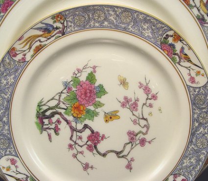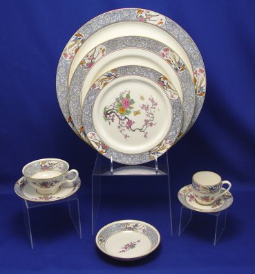 LENOX ''MING'' FINE CHINA SERVICE: 94 pieces include 12 dinner plates, 11 luncheon plates, 11 salad plates, 12 bread plates, 12 dessert bowls, 12 demi-tasse cups and saucers, 12 tea cups and saucers, 11 cream soups and underplates, and a 12'' dia. round platter,