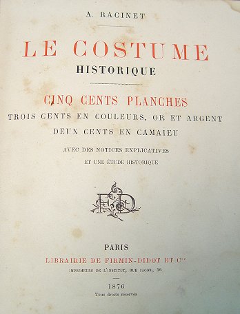 7 VOLUMES OF ''LE COSTUME HISTORIQUE'': By F.F. Bradway, Ca 1873. French text, includes volumes 1-3 and 5-8. A classic, monumental work on costume from antiquity through the 19th century. The first volume contains a general index of all plates with descriptive text for each, an index of historic persons, a bibliography of costume.