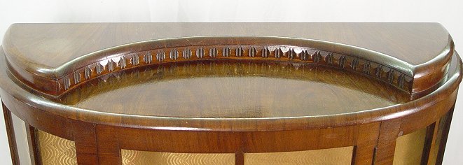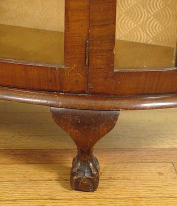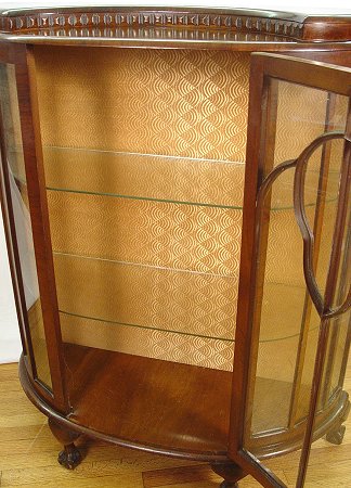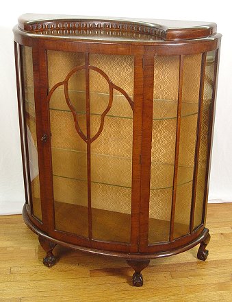 BOWFRONT ENGLISH DECO CURIO DISPLAY CABINET: Glass front interior, 46''h. x 38''x 14''.
