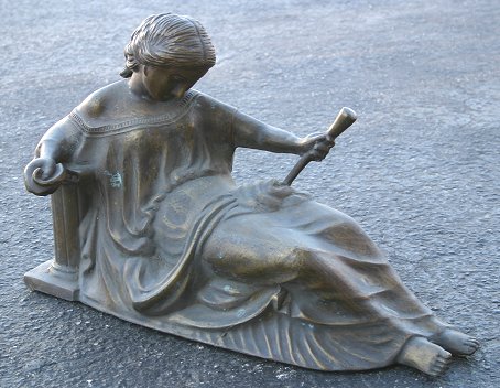 19TH CENTURY BRONZE FIGURAL CHENET: Depicting a young maiden, 14''h, 22'' l.