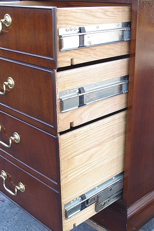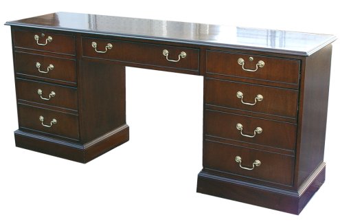 CONTEMPORARY BANDED MAHOGANY DESK: Extra long, 6', and not as deep as most, 20'', to fit in that special place. Includes a legal size drawer.