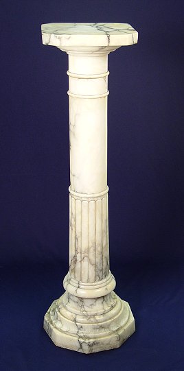 VARIEGATED WHITE MARBLE PEDESTAL: Square top 10 1/2''dia., multi piece construction, 40 1/2''h.