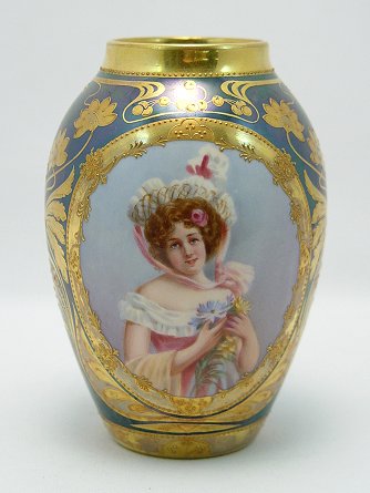FRENCH LIMOGES PORCELAIN PORTRAIT VASE: Hand painted ''Lissetta''. framed in Art Nouveau gilt work. Remy Delinieres (D&Co). Limoges France, 1894-1900. No chips or cracks. 5 3/4''.