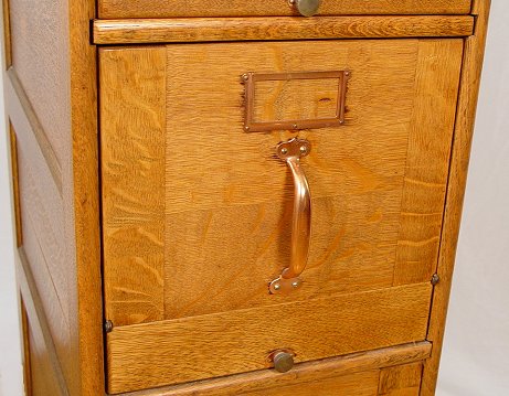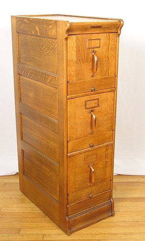 GLOBE WERNICKE OAK FILING CABINET: Three letter size drawers with tilt out drawer fronts, 48 1/2''h., 25 1/4''d., 14 3/8''w.