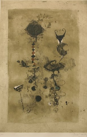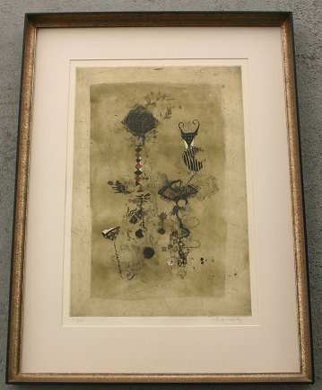 FRIEDLANDER, Isaac, (American, 1890-1968): Abstract composition, Color Etching, sight size 20 1/2'' x 13 3/4'', pencil signed lower right, illegibly titled/numbered(?) lower left, encased in custom 50's moderne frame.