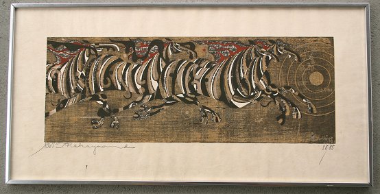 NAKAYAMA, Tadashi, (Japanese, 1927-): Heard of horses, Woodblock and Colors, 13 1/2''x 27 3/4'', pencil signed and dated lower left 1968, numbered lower right 58 of 85.