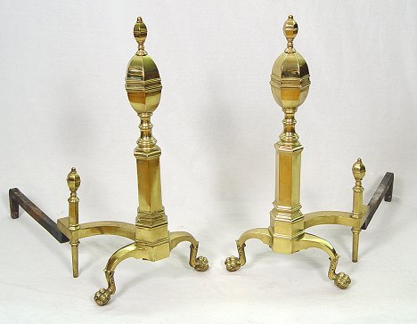 TALL FEDERAL STYLE BALL AND CLAW BRASS ANDIRONS: 29 1/2''H. X 29''L.