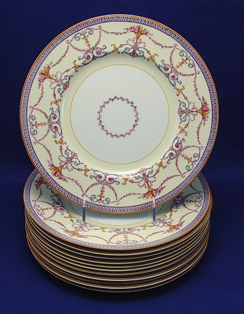 SET OF 12 ROYAL WORCESTER ''BESSBOBOUGH'' SERVICE PLATES: Enameled decoration, 10'' dia.