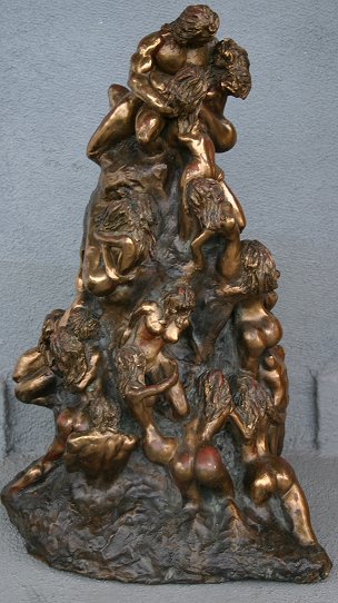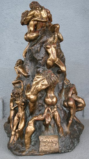 LANGLEY, David G., (American, 20th C): Erotic orgy, Patinated Bronze, approximately 22'' h, incised signature and dedication to Dorothy and Harry Gantz. Est. $500/800**