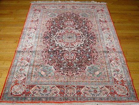 FINE SILK PERSIAN RUG: Approx. 6' x 2'. Tightly woven in an intricate design. Fringed ends. Very good condition. Est. $1800/2500**