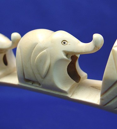AFRICAN CARVED IVORY TUSK ELEPHANT BRIDGE: 5 elephants climbing along a serpent. Purchased in 1930's Senegal. 23 1/2''l.