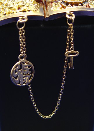 18K GOLD LAOTIAN 4 SEASONS BRACELET: Lovely eight panel bracelet of alternating panels in floral motifs and character disks. Signed? with small disk from safety chain, approx. 7''l., approx. 56 grams. Est. $1500/2000**