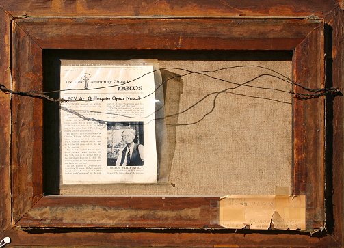 DUVALL, Charles William, (American, 1865-1966): Duvall's home in Florida, O/C, 12'' x 18'', signed lower right, dated 1929, encased in original period gilded frame, worn and has gilt loss, 14 3/4'' x 20 1/2'', artist label affixed verso along with the clipping from the First Community Church Weekly Newspaper. Condition - Needs cleaning.