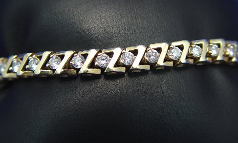 LOVELY DIAMOND LINE BRACELET: Flexing ''Z'' links of 14k yellow gold set with small diamonds, approx. 7-10pts each, approx. 2ctw, 7''l., pressure clasp with safety latch, approx. 13.5grams.