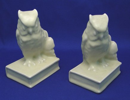 PAIR OF ROOKWOOD POTTERY OWL FIGURAL BOOKENDS: White matte finish, RP mark, shape 2655, dated 1946, scratched with an X. 6''h. No chips or cracks.