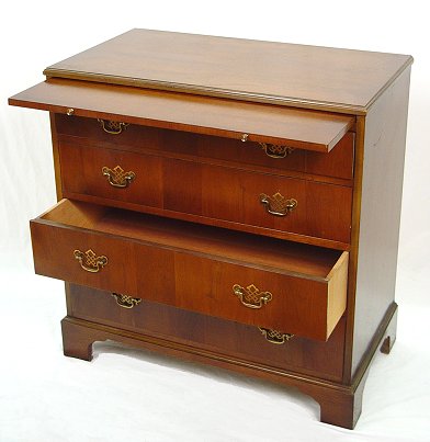 CHIPPENDALE STYLE MAHOGANY 4 DRAWER SERVER CHEST: Mid 20th C. American manufactured diminutive chest of four drawers under a pull out tray. Approx. 30''h. x 29'' x 16''.