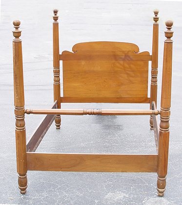 LATE 19TH CENTURY POSTER BED: Head posts and foot posts are equal height at 5'9''. Will accomodate a 75 x 54'' mattress. Rails included.