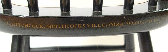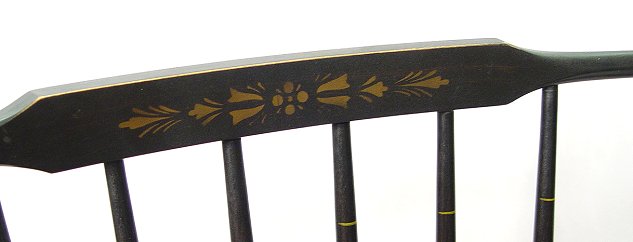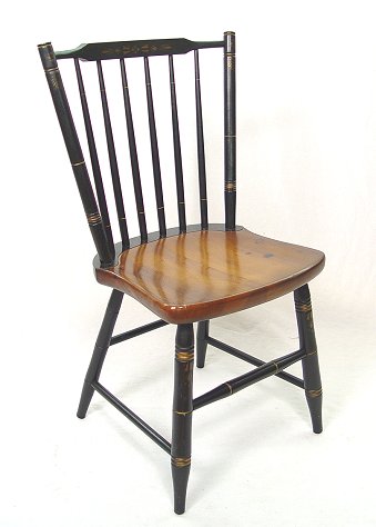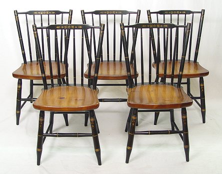 SET OF FIVE HITCHCOCK CHAIRS: Matched set of six stickback Windsor type chairs. Black with original gold stencil design. Signed across the back of the seats and with paper labels. Stockroom #440.