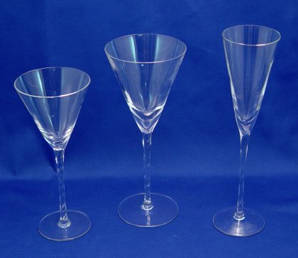 MIKASA CRYSTAL ''BRAID'' STEMWARE: Service for 12, champagne flutes 10'', water goblets 9 3/8'' and wine glasses (minus 1) 8 5/8'' for a total of 35 pieces. Heights are approx., very occassional rim chips.