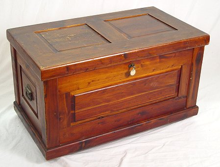 EARLY CHEST: Paneled trunk, 19 1/2'' x 35'' x 19 3/4''.