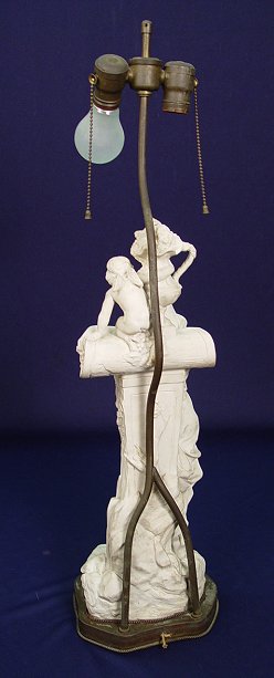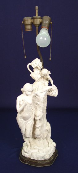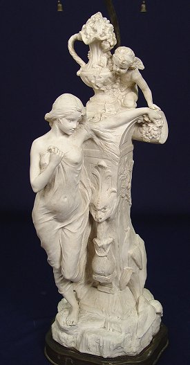 PARIANWARE VENUS AND CUPID FIGURE: Mounted as a lamp, the figure is 20''h.