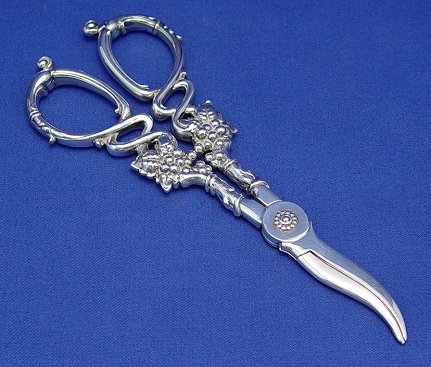 TIFFANY & CO STERLING GRAPE SHEARS: Lovely repousse grape and vine motif handles, marked Tiffany & Co Makers C, 7''l.