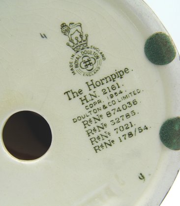 ROYAL DOULTON FIGURE ''THE HORN PIPE'': HN2161, 9 1/4''h., at one time broken from and reattached to the base, generalized crazing.