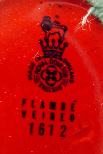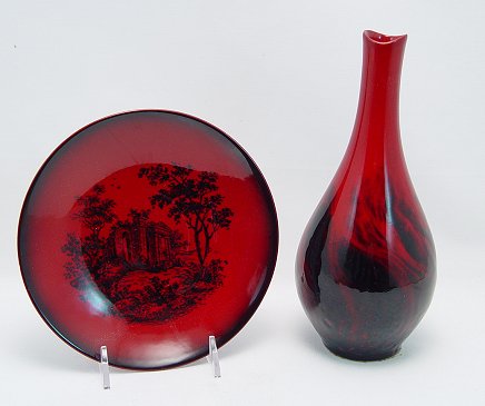 2 PC ROYAL DOULTON FLAMBE: Veined vase 1612, 8''h. and woodcut plate 1621, 6''dia.