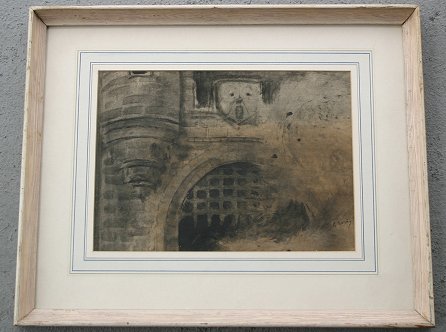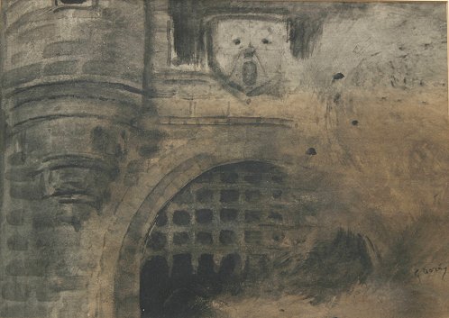 DORE, Gustave, Attribution,(French, 1832-1883): Study of a castle gate, W/C Gouache, 9 3/4'' x 13 1/2'', signed lower right, newer white wash frame with custom mat, worn frame, 17'' x 21''.