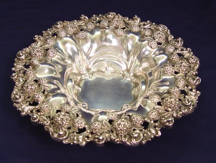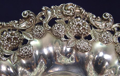 MOST ORNATE MARCUS & CO. STERLING BOWL: Deeply fluted bowl with heavy repousse floral and scroll design. Hallmarked ''Marcus & Co. Sterling 925/1000'' and a C in Diamond. Ca. 1918-1927. 10 1/2'' dia, 2''h., approx. 18.71 oz. Few minute pinpoint dents, hard to find amongst active pattern. No monogram.