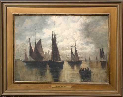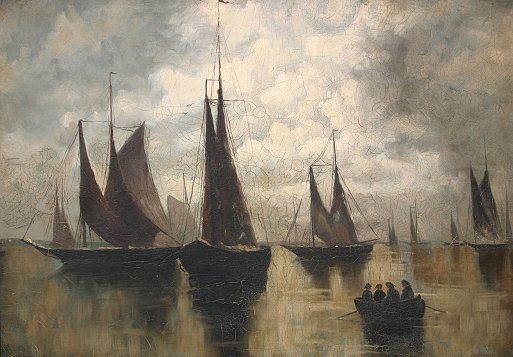 1st QUARTER 20TH CENTURY HARBOR SCENE ''DRAWING THE NETS'': O/B, 20'' x 27 3/4'', no visible signature, encased in a gilded frame with wear, 28'' x 35 1/2''.