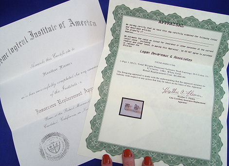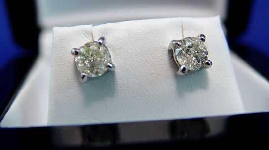1.5CTW DIAMOND STUD EARRINGS: Round brilliant cut diamonds, purported HI color and I2 clarity, set in four prong stud earrings of 14k white gold. Sold with an appraisal stating Retail Replacement Cost of $4400.00.
