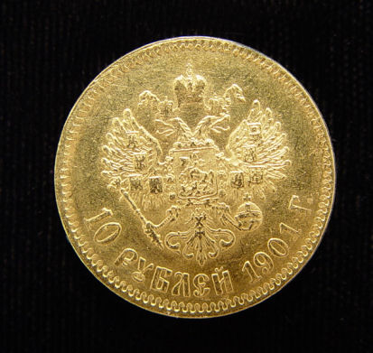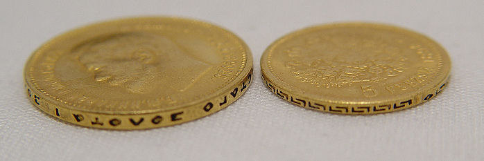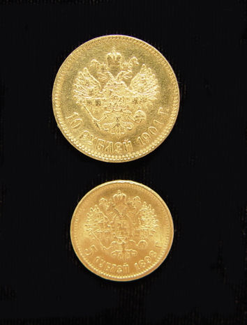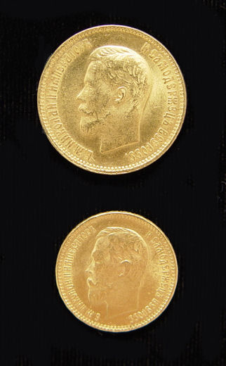 RUSSIAN 10 RUBLE & 5 RUBLE GOLD COINS: The 10 ruble is dated 1901 and 5 rubble dated 1898. The coins are not graded, but both coins appear to be in very good condition.