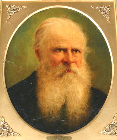 O/C PORTRAIT OF TOLSTOY SIGNED P.TROUBETZKOY: 20'' x 16'', encased in a gilded frame with oval liner, 23'' x 18 3/4''. Est. $500/800**