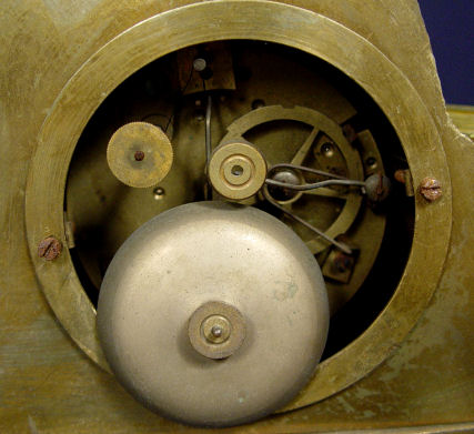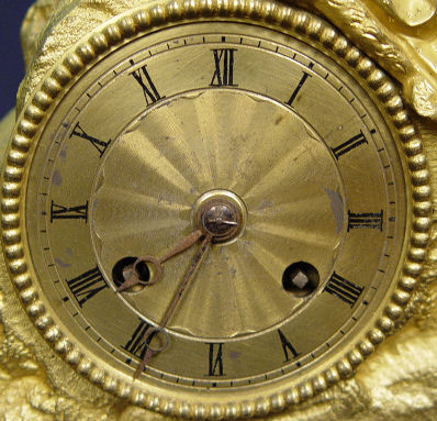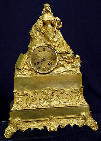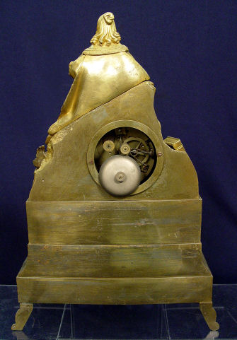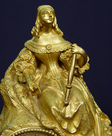 MARIE ANTOINETTE FIGURAL BRASS CLOCK: Entire case, dial, works, and figure of Marie Antoinete are brass. Clock in as found condition.
